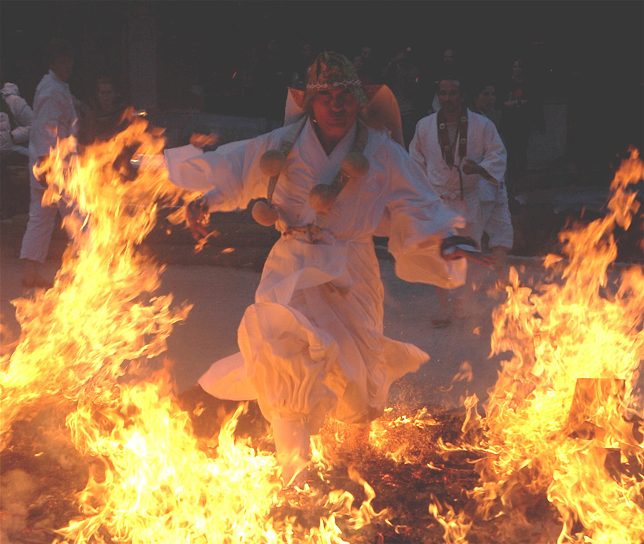 The fire ceremony is one of the rituals of "employed magic" among the many secrets of Shugendo and it requires sometimes that the yamabushi walk across a fire bed (Kassyo Zanmai).