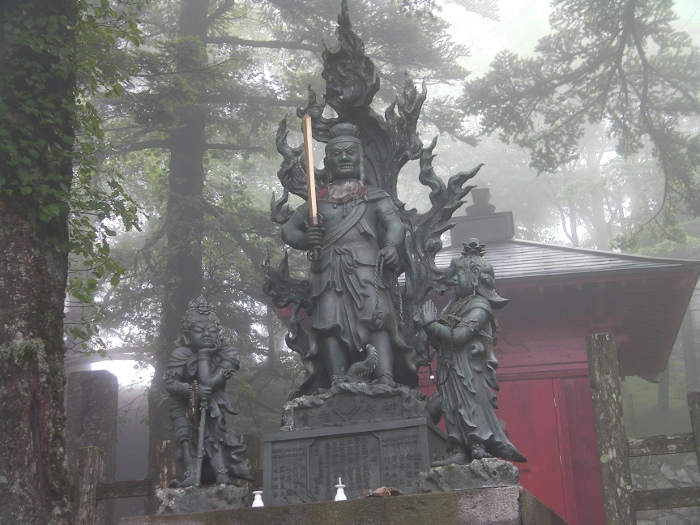 On y vénère les « huit grands enfants du Vajra », acolytes de Fudo-Myo (Hachi-dai Kongo-dôji). Ce canyon voit à présent ses échelles en bois accrochées à la paroi, on comprend qu’en venant de l’autre sens, tombant sur un à pic, les ermites aient rebroussé chemin!